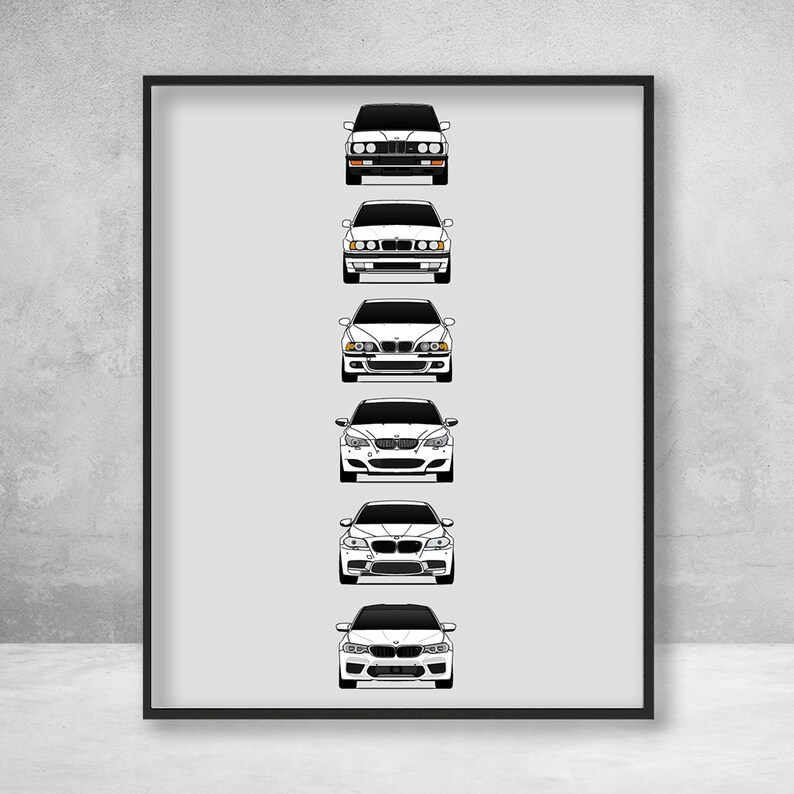 Bmw m5 poster print wall art of the history and evolution e28 e34 e39 e60 f10. Bmw e28 m5, bmw e34 m5, bmw e39 m5, bmw e60 m5, bmw f10 m5, bmw f90 m5. ★ color customization ★ custom car.